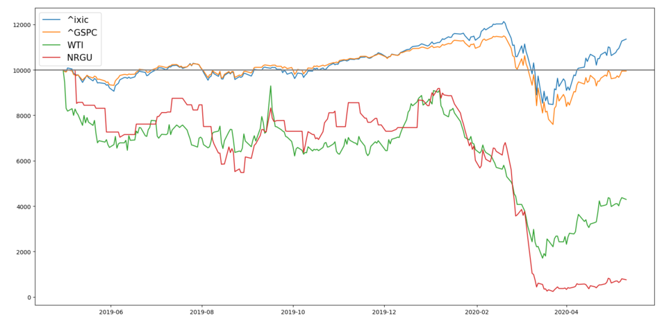 <S&P500, NASDAQ, WTI, NRGU OVERLAY>